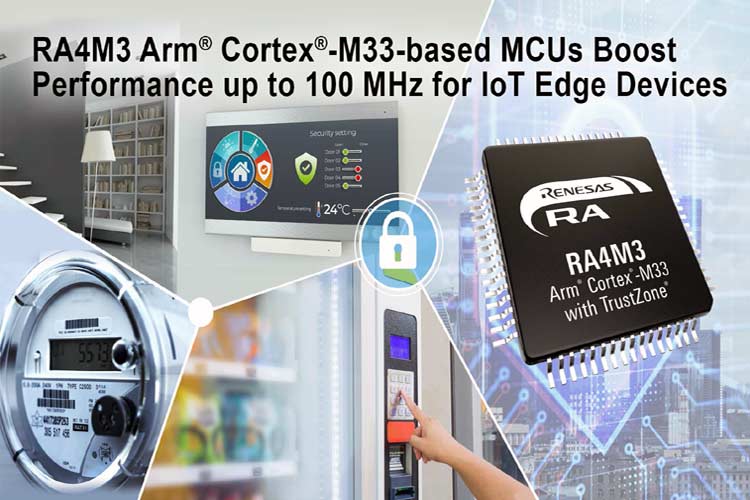 Renesas Electronics has released new 32-bit RA4M3 microcontrollers that can boost operating performance up to 100 MHz in industrial and IoT applications. The Arm TrustZone technology, a Secure Crypto Engine, and a suite of new memory enhancements allow the device to develop safe and secure IoT edge devices for low power applications such as security, metering, industrial, and HVAC applications.